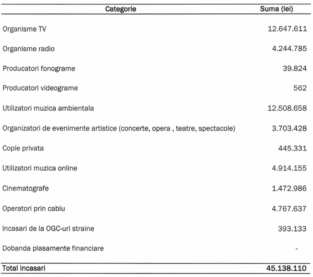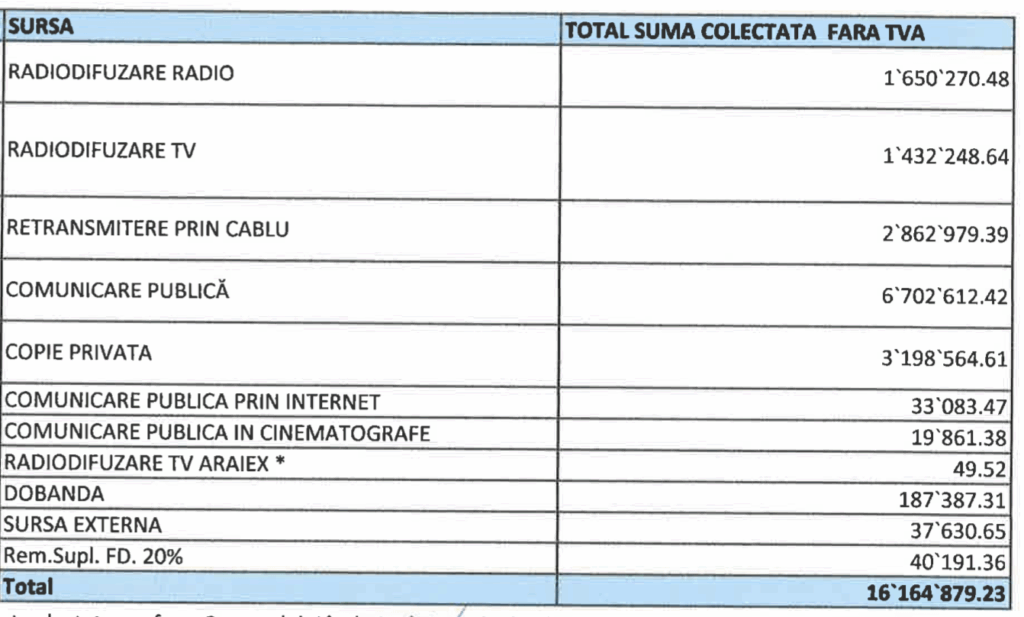Comparativ cu trimestrul anterior, se poate observa o colectare cu 1 mil. euro mai puțin, diferența fiind la remunerațiile colectate de la TV.